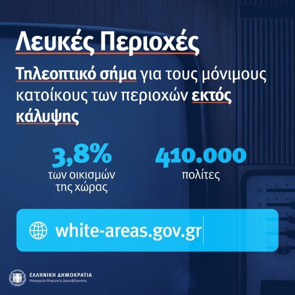 Ο Δήμος Θέρμου ενημερώνει ότι ανακοινώθηκε από το υπουργείο Ψηφιακής Διακυβέρνησης η έναρξη λειτουργίας της πλατφόρμας για τη δράση «Λευκές Περιοχές», με την οποία νοικοκυριά και οικισμοί που βρίσκονται εκτός τηλεοπτικής κάλυψης αποκτούν πρόσβαση σε αυτή δωρεάν και για διάστημα οκτώ ετών, με μια ιδιαίτερα απλή διαδικασία.