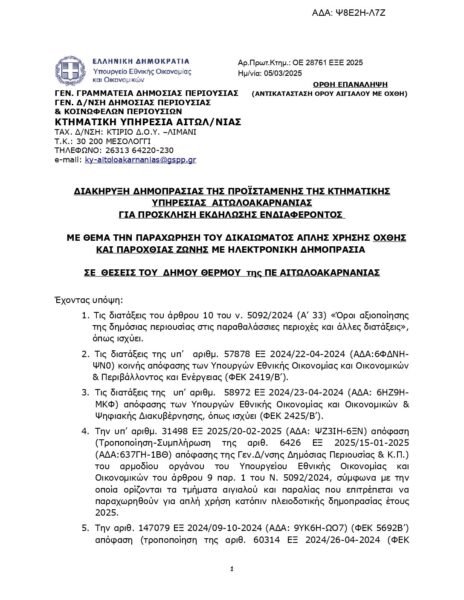 ΔΙΑΚΗΡΥΞΗ ΠΡΟΣΚΛΗΣΗΣ ΕΚΔΗΛΩΣΗΣ ΕΝΔΙΑΦΕΡΟΝΤΟΣ